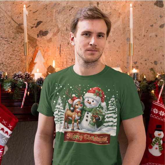 Dizajn za unikatno božično Merry christmas majico sno naredili v naši fotokopirnici. Vse na sliki lahko spremenimo glede na vaše želje. Dodamo lahko poljubni tekst. Izbirate lahko med ženskimi, moškimi in otroškimi modeli v različnih barvah.